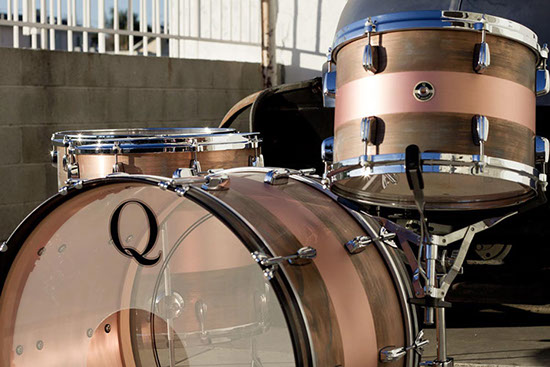 Q Drum Co. makes their drum shells out of copper, stainless & galvanized steel, bell brass and various woods – your drum voice will never be the same. On their metal-shelled drum kits, they use maple reinforcement rings on the bearing edges to warm up the spectacular sound of the material. Truly unique and only you can decide how to speak to your audience.